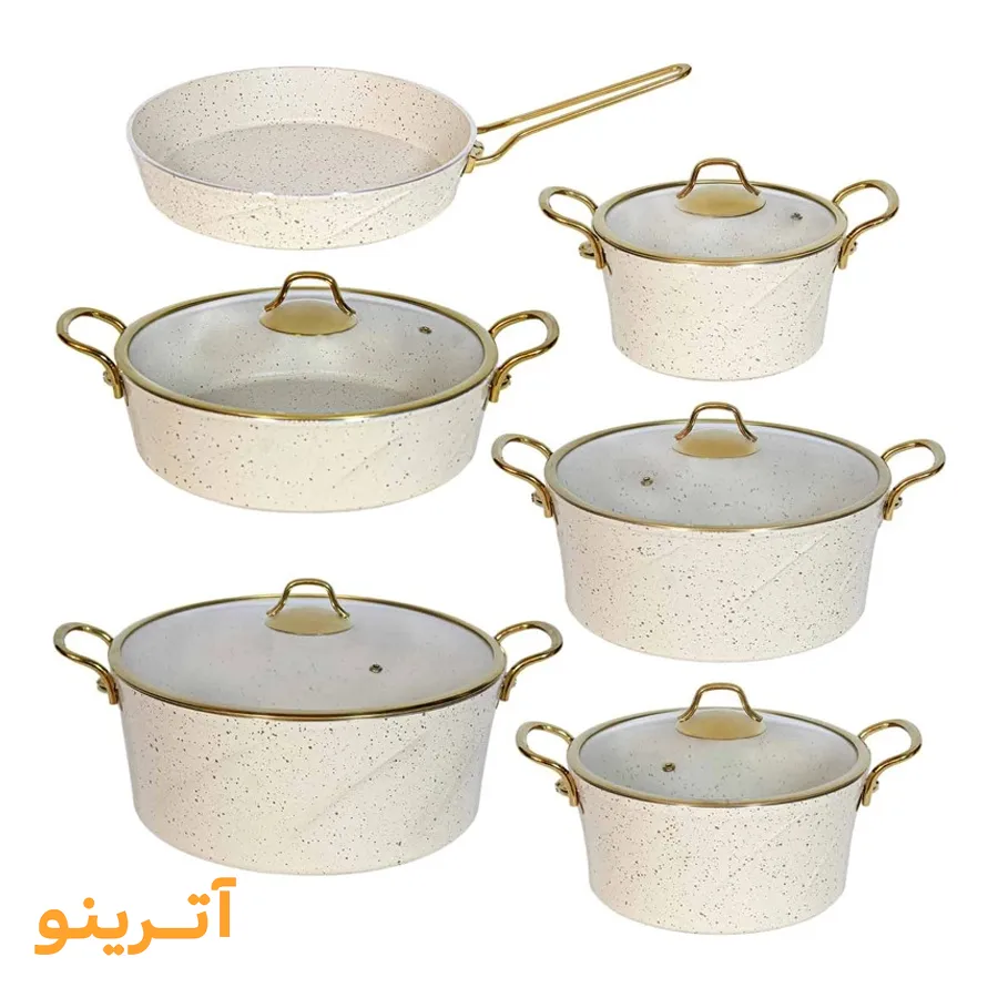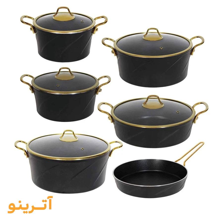 این سرویس قابلمه با استفاده از متریال با کیفیت فورج، مقاومت و طول عمر بالایی دارد. جنس بدنهی قابلمهها از آلومینیوم فورج شده است که علاوه بر حفظ زیبایی، باعث پخش یکنواخت حرارت در طول زمان پخت میشود. این ویژگی منجر به صرفهجویی در زمان و انرژی میگردد. همچنین، دستههای طلایی این سرویس، علاوه بر ظاهری شکیل و زیبا، از جنس مقاوم در برابر حرارت هستند که امکان جابجایی آسان قابلمهها فراهم میکند.